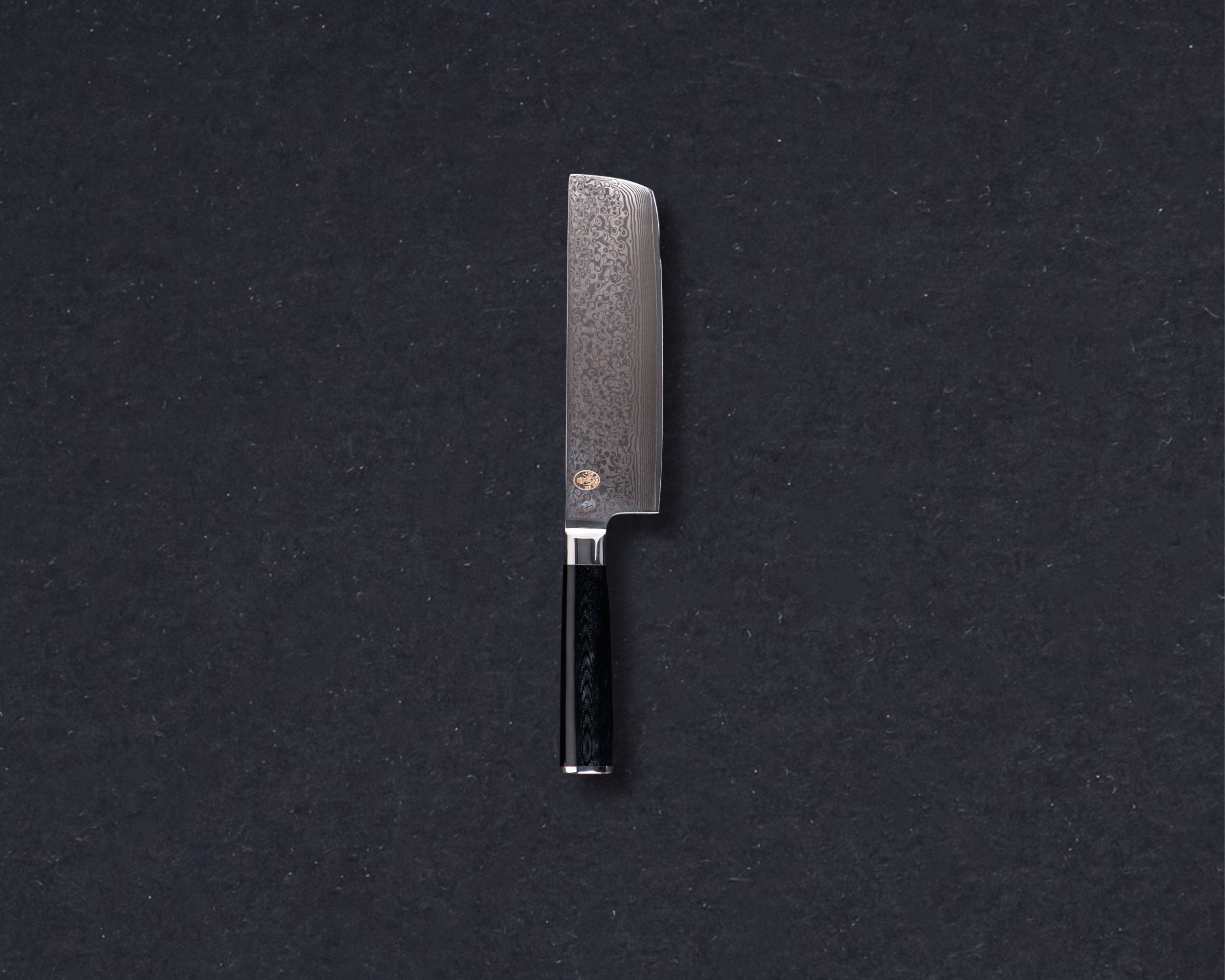 The Hasaki Signature Damascus 7″ Nakiri Knife is built for clean, methodical vegetable preparation. The straight edge supports controlled push cuts, helping keep slices even and consistent across the board. It suits cooks who value accuracy and order over speed.
